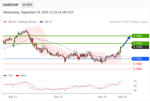 在 0.7915 之上,看涨,目标价位为 0.7945 ,然后为 0.7960 。
