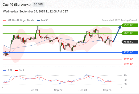 在 7790.00 之上,看涨,目标价位为 7889.00 ,然后为 7930.00 。