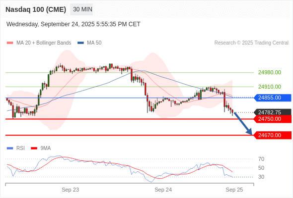 在 24855.00 之下,看跌,目标价位为 24750.00 ,然后为 24670.00 。