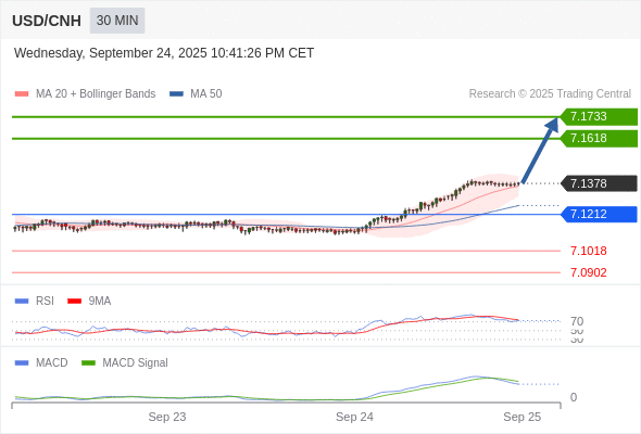 美元/人民币 当日内: 看涨,当 7.1212 为支撑位,目标定在7.1733。