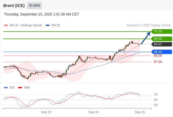 在 68.40 之上,看涨,目标价位为 69.55 ,然后为 70.20 。