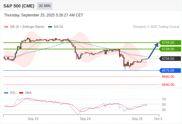 在 6675.00 之上,看涨,目标价位为 6728.00 ,然后为 6744.00 。