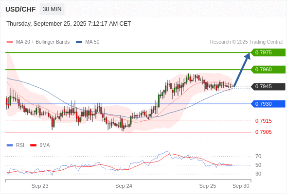 在 0.7930 之上,看涨,目标价位为 0.7960 ,然后为 0.7975 。