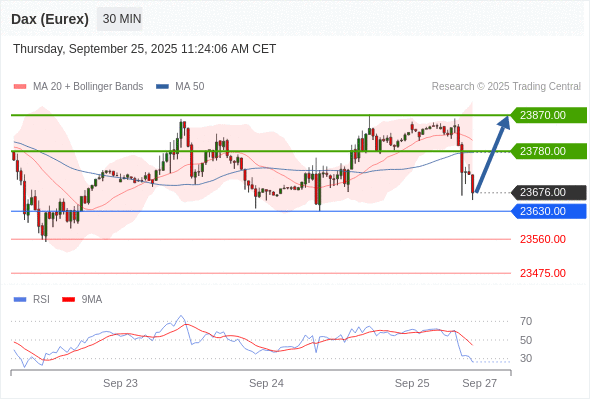 在 23630.00 之上,看涨,目标价位为 23780.00 ,然后为 23870.00 。