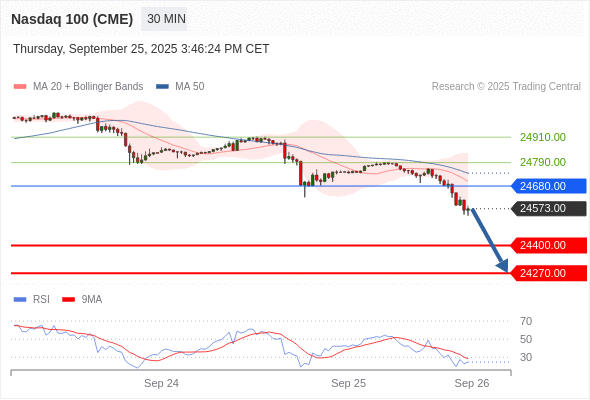 在 24680.00 之下,看跌,目标价位为 24400.00 ,然后为 24270.00 。