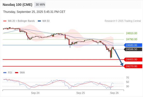 在 24680.00 之下,看跌,目标价位为 24400.00 ,然后为 24270.00 。