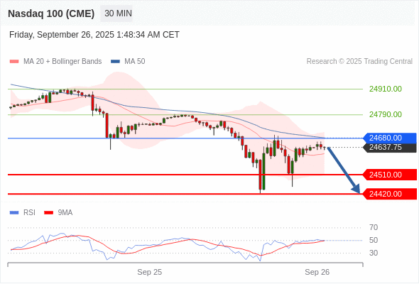 在 24680.00 之下,看跌,目标价位为 24510.00 ,然后为 24420.00 。