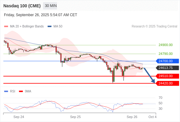 在 24700.00 之下,看跌,目标价位为 24510.00 ,然后为 24420.00 。