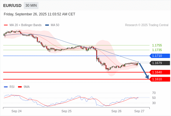 在 1.1710 之下,看跌,目标价位为 1.1640 ,然后为 1.1610 。
