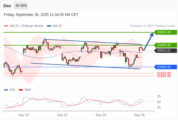 德国DAX指数 当日内: 期待23685.00。