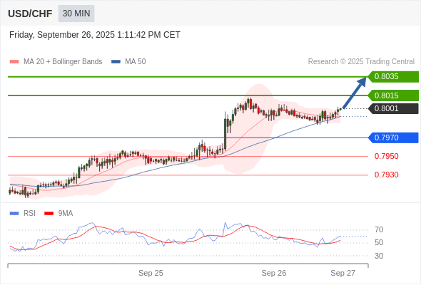 在 0.7970 之上,看涨,目标价位为 0.8015 ,然后为 0.8035 。