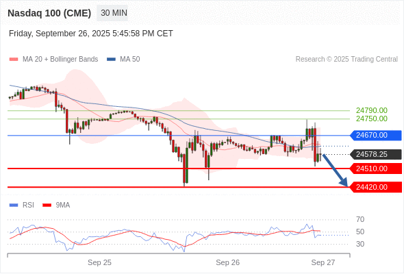 在 24670.00 之下,看跌,目标价位为 24510.00 ,然后为 24420.00 。