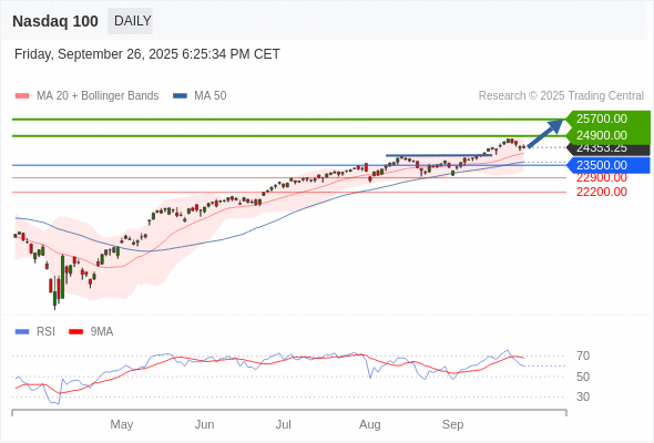 在 23500.00 之上,看涨,目标价位为 24900.00 ,然后为 25700.00 。