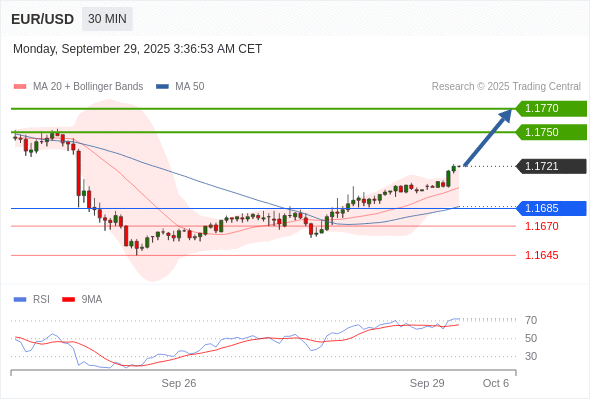 在 1.1685 之上,看涨,目标价位为 1.1750 ,然后为 1.1770 。