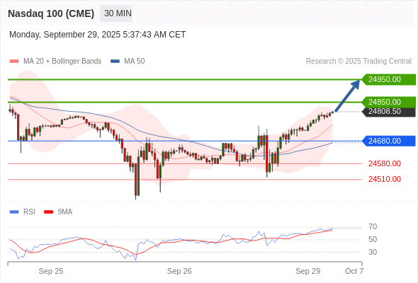 在 24680.00 之上,看涨,目标价位为 24850.00 ,然后为 24950.00 。