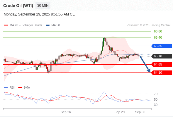 在 65.85 之下,看跌,目标价位为 64.65 ,然后为 64.10 。