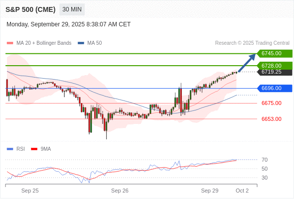 在 6696.00 之上,看涨,目标价位为 6728.00 ,然后为 6745.00 。