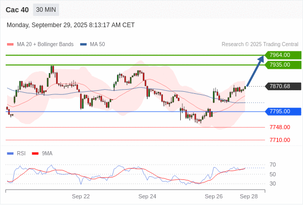 在 7795.00 之上,看涨,目标价位为 7935.00 ,然后为 7964.00 。