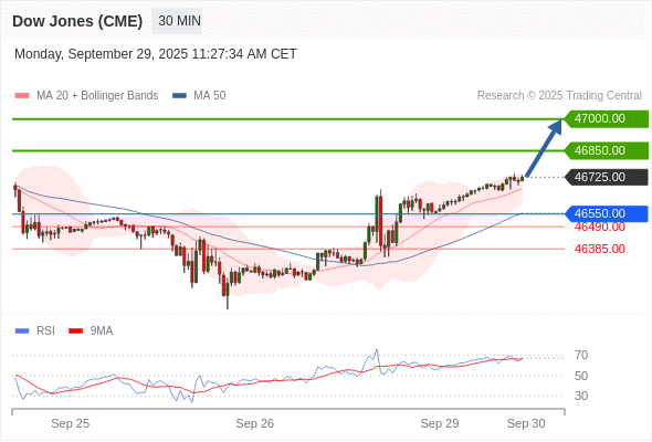 在 46550.00 之上,看涨,目标价位为 46850.00 ,然后为 47000.00 。
