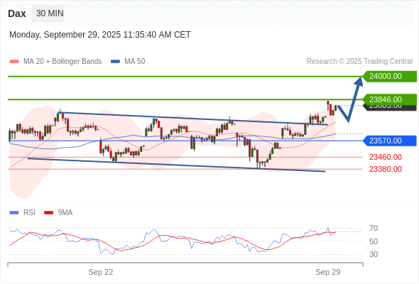 德国DAX指数 当日内: 在23570.00之上,看涨。