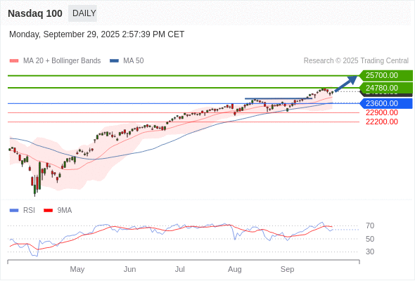在 23600.00 之上,看涨,目标价位为 24780.00 ,然后为 25700.00 。