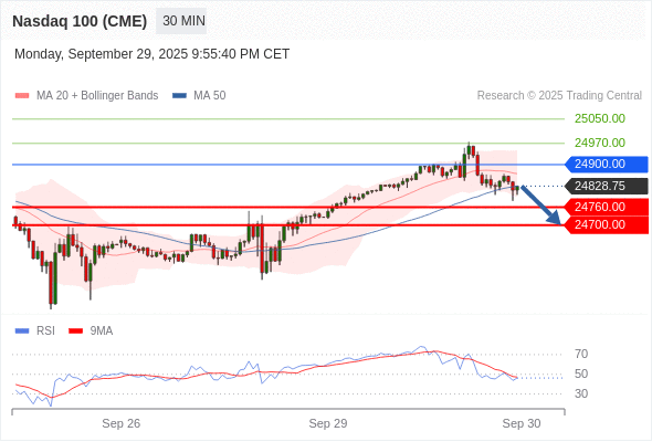 在 24900.00 之下,看跌,目标价位为 24760.00 ,然后为 24700.00 。