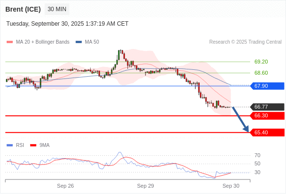 交易策略: 在 67.90 之下,看跌,目标价位为 66.30 ,然后为 65.40 。