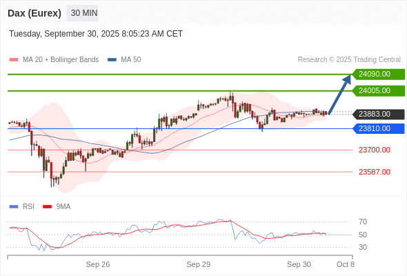 交易策略: 在 23810.00 之上,看涨,目标价位为 24005.00 ,然后为 24090.00 。