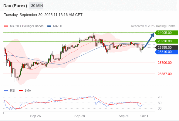 交易策略: 在 23810.00 之上,看涨,目标价位为 23920.00 ,然后为 24005.00 。