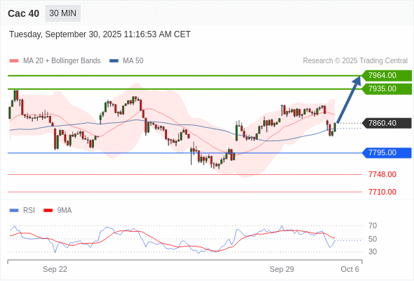 Cac 40 当日内: 在7795.00之上,看涨。