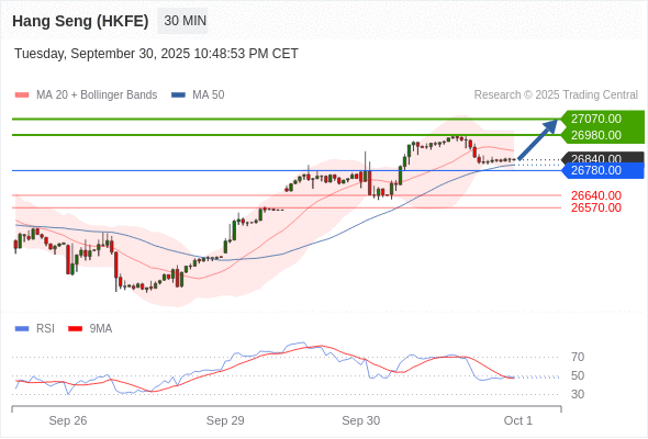 香港恒生指数期货 当日内: 超短线(当日内)支撑位在26780.00附近。