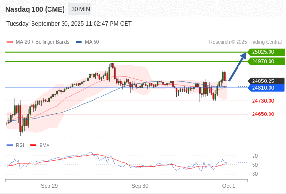 在 24810.00 之上,看涨,目标价位为 24970.00 ,然后为 25025.00 。