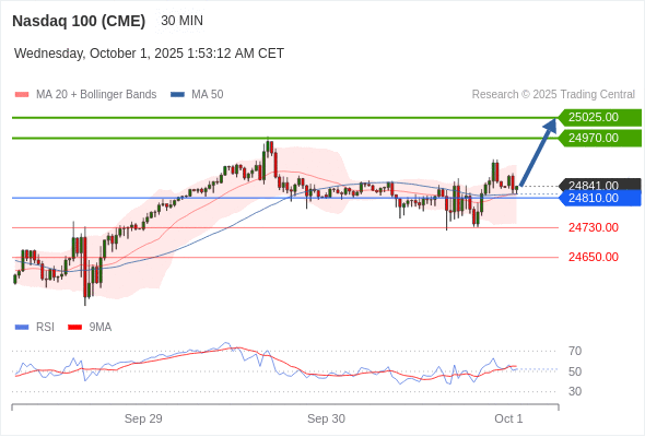 在 24810.00 之上,看涨,目标价位为 24970.00 ,然后为 25025.00 。