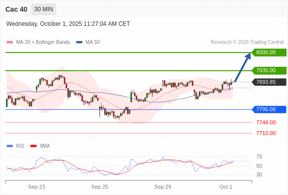 在 7795.00 之上,看涨,目标价位为 7935.00 ,然后为 8000.00 。