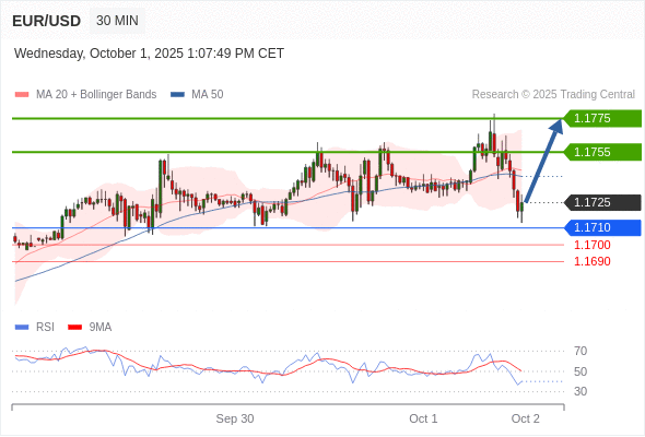 在 1.1710 之上,看涨,目标价位为 1.1755 ,然后为 1.1775 。