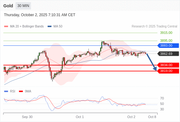 在 3883.00 之下,看跌,目标价位为 3834.00 ,然后为 3819.00 。