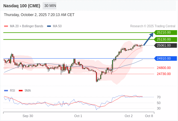 在 24910.00 之上,看涨,目标价位为 25130.00 ,然后为 25210.00 。