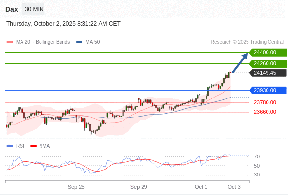 在 23930.00 之上,看涨,目标价位为 24260.00 ,然后为 24400.00 。