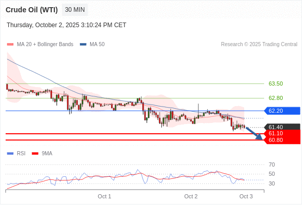 在 62.20 之下,看跌,目标价位为 61.10 ,然后为 60.80 。