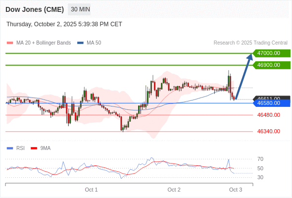 在 46580.00 之上,看涨,目标价位为 46900.00 ,然后为 47000.00 。