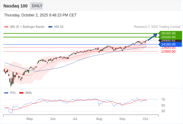 在 24180.00 之上,看涨,目标价位为 25500.00 ,然后为 26160.00 。
