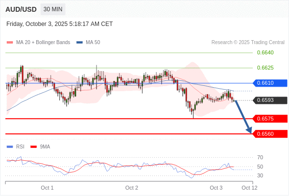 在 0.6610 之下,看跌,目标价位为 0.6575 ,然后为 0.6560 。