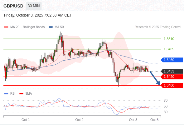 交易策略: 在 1.3460 之下,看跌,目标价位为 1.3420 ,然后为 1.3400 。