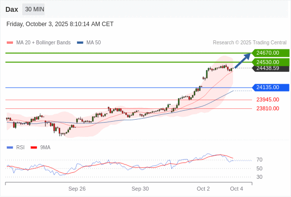 在 24135.00 之上,看涨,目标价位为 24530.00 ,然后为 24670.00 。