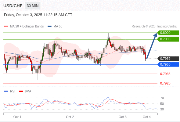 在 0.7950 之上,看涨,目标价位为 0.7990 ,然后为 0.8000 。