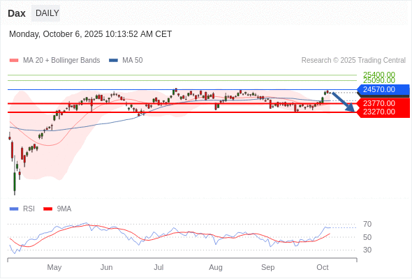 德国DAX指数 短线: 短期关键阻力位在24570.00。