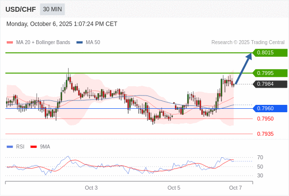 在 0.7960 之上,看涨,目标价位为 0.7995 ,然后为 0.8015 。