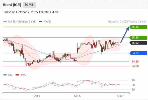 在 64.85 之上,看涨,目标价位为 65.85 ,然后为 66.55 。