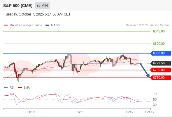在 6800.00 之下,看跌,目标价位为 6766.00 ,然后为 6750.00 。