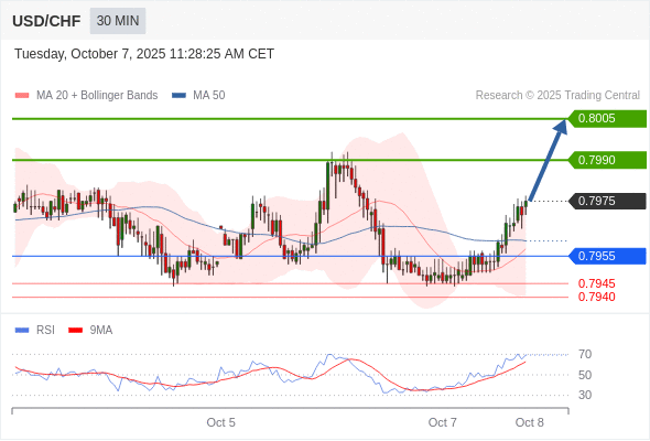 在 0.7955 之上,看涨,目标价位为 0.7990 ,然后为 0.8005 。